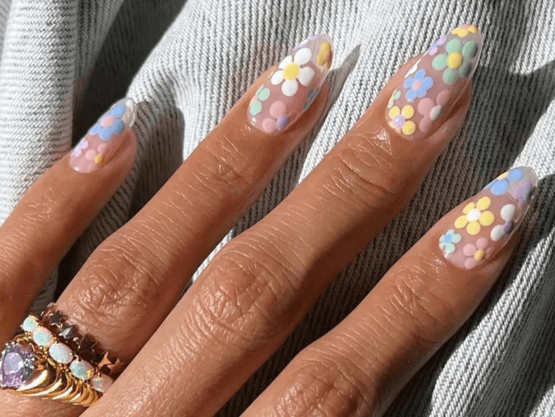 Με ένα ψυχεδελικό και πολύχρωμο σχέδιο λουλουδιών, αυτό το μανικιούρ ανήκει στη δεκαετία του ’70. Είναι η ιδανική επιλογή για όσες θέλουν να δείχνουν ρετρό.