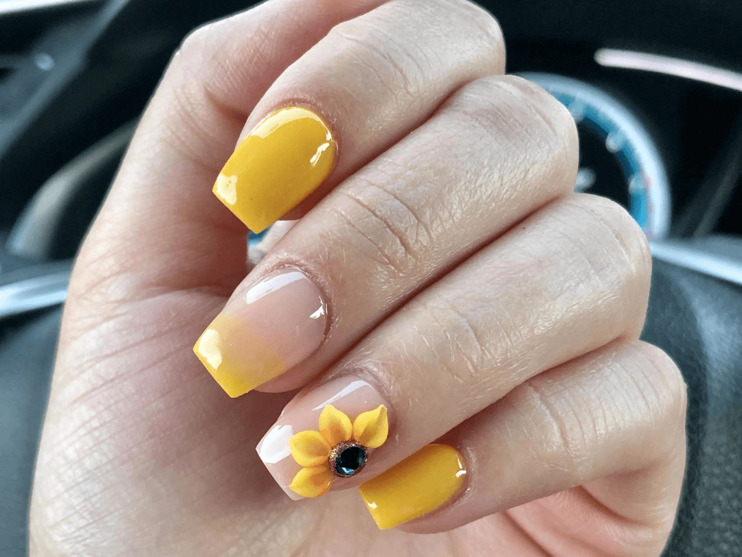 2. Ένα μανικιούρ με τρισδιάστατα ηλιοτρόπια
