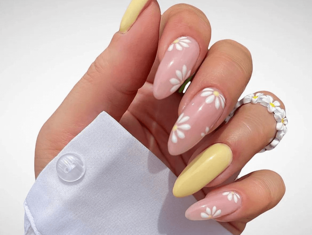 Σε αυτή τη γοητευτική πρόταση, οι ντελικάτες μαργαρίτες σχεδιάζονται σε μια πολύ απαλή ροζ βάση. Για να προσδώσουν μια νεανική και μοντέρνα πινελιά, εναλλάσσονται με νύχια σε παστέλ αποχρώσεις. Το αποτέλεσμα είναι ένα ρομαντικό και θηλυκό στυλ που θυμίζει τη χαρά της άνοιξης και του καλοκαιριού.